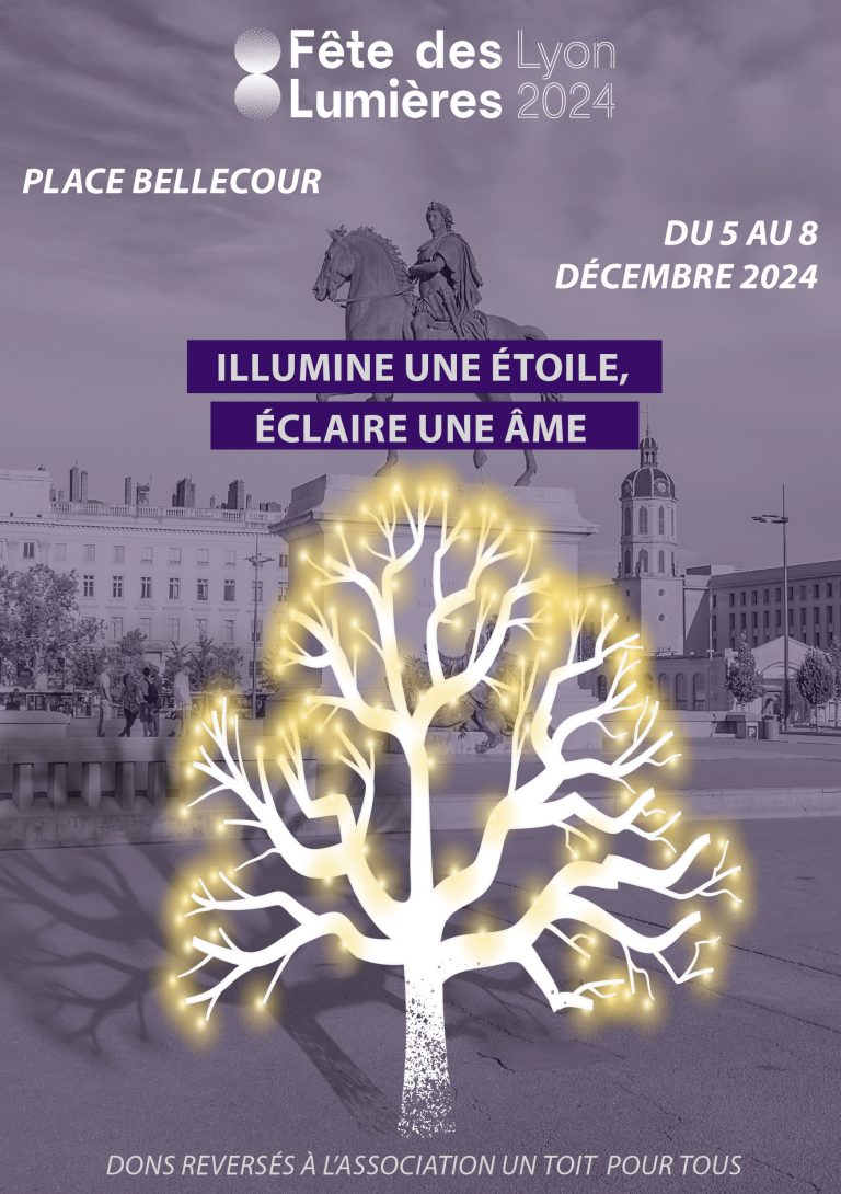 Pour cela, nous avons imaginé une animation où les participants pouvaient acheter une étoile lumineuse symbolisant un don. Ces étoiles étaient ensuite accrochées à un grand arbre artificiel installé sur la place Bellecour, créant ainsi un visuel fort et évolutif, représentant la solidarité et l’espoir.